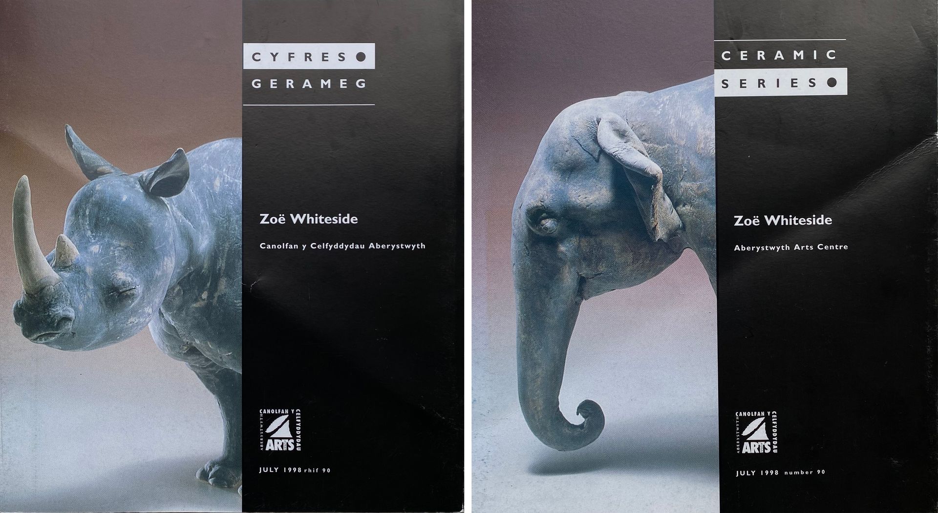 A grainy black and white photograph of a small child sitting astride a rhinoceros, taken some ears ago, is an image which Zoe Whiteside returns to time and time again. It stands as a sort of totem of humankind's relationship with the animal world. In this picture, the child jubilantly raises her arms, and the rhino, far from appearing cowed, has its head lifted, gazing upwards and forwards, apparently enjoying the relationship. The image is open to a wide range of meanings, referring as it does to the symbiotic relationship between animals and humanity, but for Whiteside its significance lies in its optimistic and positive mood, qualities which are, she says, a vital part of her work. Zoe Whiteside is part of the growing number of artists working in clay who model animals. After years of neglect, the animal world has become a fascinating and legitimate area, challenging artists to do tar more than focus on external appearance but to aim to get beneath the skin, to tell us more about the animalness of creatures who have existed alongside humankind for thousands of years. Animals in sculpture have been imbued with many meanings, ranging from heavily symbolic such as Leighton's python evoking the threat of engulfing sexuality, to the saccharine whimsicality of Bambi and the world of Walt Disney. Such considerations have little importance for Whiteside who shys away from pyschobabble in favour of a more physical relationship with animals, more concerned with how they are structured, the way they stand, and how one part informs the other rather than what they signify. Like many artists working with clay, Whiteside approached her chosen area slowly. As a student on a two year B lech art foundation course in Basingstoke there was plenty of encouragement and opportunities for experiment. Although torn between glass and clay, it was the tactile direct quality of clay which finally caught her imagination because it could be handled, as opposed to glass which could onlv be manipulated with tools. It was the possibility of working with both clay and glass which prompted the choice of Stoke for her degree, as the course offered the option of working with both materials, but again it was the clay which won, and by the second year she had started to model animals. Interestingly, this grew from wanting to decorate a pot with a design of a monkey, and slowly the monkey turned into a relief until it became an object independent of the vessel. Ever since Whiteside has continued to explore the animal kingdom.